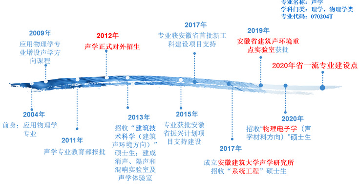 安徽888集团声学专业2012年首次面向全国招收本科生,2015年获批安徽省振兴计划项目支持建设,2017年获安徽省首批新工科建设项目支持,2019年获批安徽省建筑声环境重点实验室,2020年获安徽省一流专业建设点。