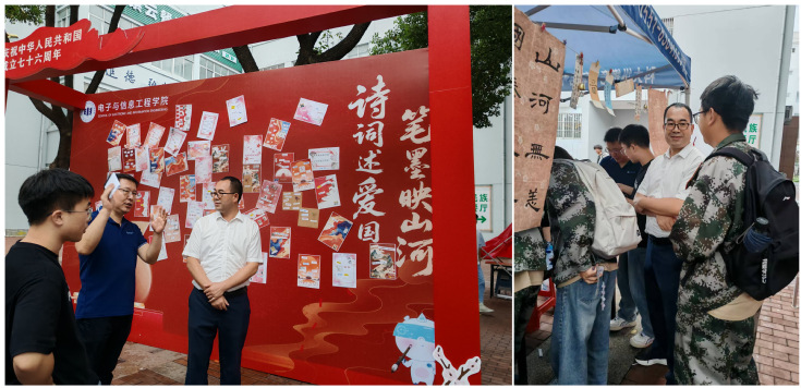本网讯 为庆祝中华人民共和国成立76周年,纪念中国人民抗日战争暨世界反法西斯战争胜利80周年,厚植师生爱国情怀、传承中华优秀传统文化。9月29日至30日,电子与信息工程学院组织开展“诗词述爱国?笔墨映山河”庆国庆中秋主题活动。活动不仅吸引了全校师生踊跃参与,更迎来多位留学生的身影,中外学子以诗词为桥、以笔墨为媒,共话家国情怀,同赏中华文化魅力。