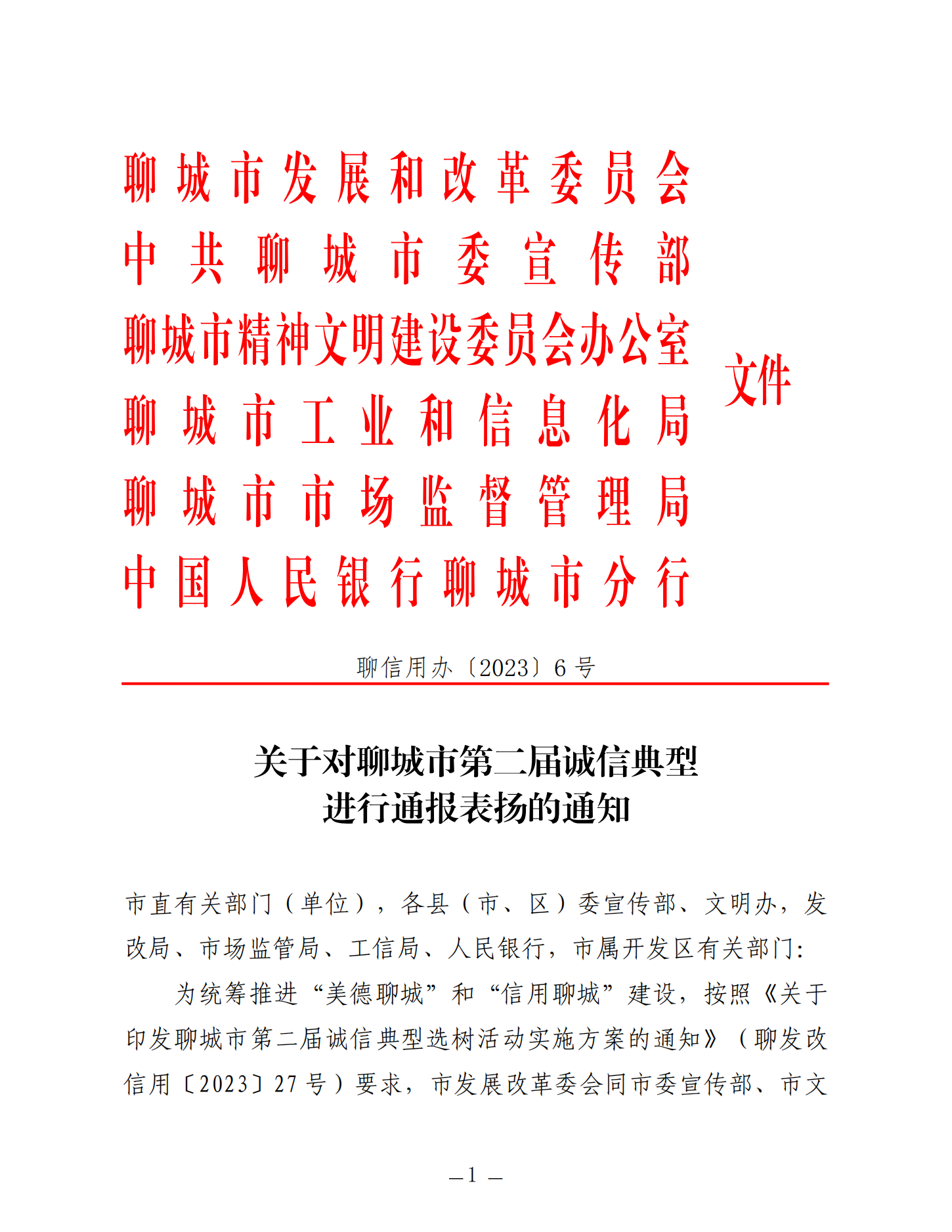 由市发展改革委员会同市委宣传部、市文明办、市工信局、市市场监管局、中国人民银行聊城市分行共同主办的聊城市第二届诚信典型选树活动结果公布,888集团集团有限公司荣获诚信单位称号,彰显了公司在诚信经营、社会责任等方面的卓越表现。